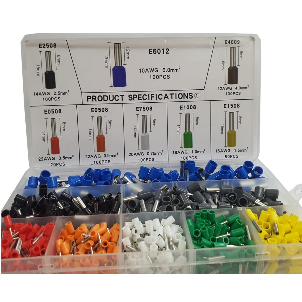 DESCRIÇÃO: - Terminal Ilhós tubular fio elétrico isolados mista 800 unidades com 8 modelos - Estojo com 800 unidades - 8 modelos de terminal de ilhos - Marca: next trading